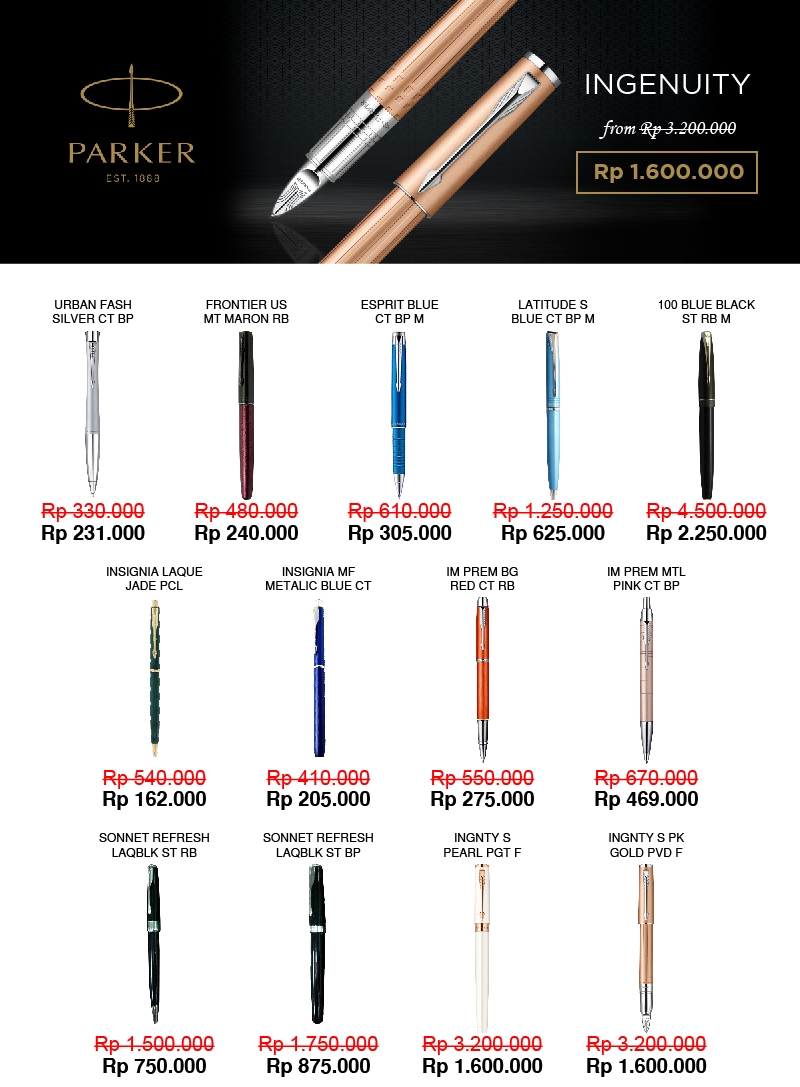 Hai, para karyawan Sahabat Utama! Kali ini, PT. Sahabat Utama Traco mengadakan bazaar dengan SALE up to 90%. Bazaar ini hanya berlaku untuk seluruh karyawan internal Sahabat Utama Group. Produk yang dijual pada internal bazaar adalah Parker, Moleskine, Cote et Ciel, O2O dan Waterman. Dapatkan produk favorit Anda dengan kualitas terbaik dan harga yang terjangkau. Scroll ke bawah untuk melihat katalog produk, cara beli dan pembayaran.