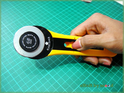Perbedaan Rotary Cutter dengan cutter biasa adalah Rotary Cutter memotong bahan dengan lebih lembut dan mudah tidak menyebabkan bahan terlipat.