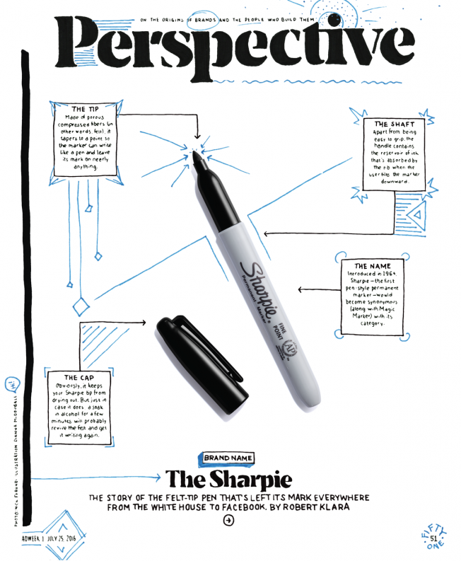 Bagaimana semua ini bermula? Spidol Sharpie Felt-tip sudah diproduksi sejak awal tahun 1900an dan “magic marker” ada sejak 1953. Namun di tahun 1964, Sanford Ink Company mempatenkan hak cipta pada felt-tip, sebuah spidol permanen yang dapat menempel di berbagai permukaan. Hingga saat ini, spidol Sharpie memiliki 31 warna, namun warna hitam tetap menjadi best seller.