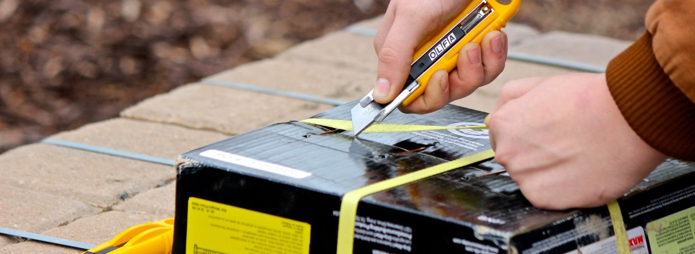 Letakkan karton dengan jarak yang aman dar perut Anda. Gerakan pisau dengan arah menjauh dari badan. Selalu perhatikan jarak antara pisau dan badan Anda, pekerja maupun pelanggan Anda.