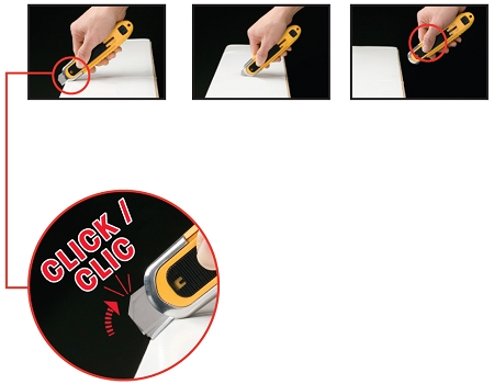 2. Setelah terdengar bunyi klik, tandanya cutter sudah aman untuk digunakan.