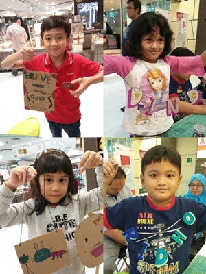 Dalam Workshop Simple DIY Decoration ini anak-anak diajarkan membuat sebuah dekorasi ruangan menggunakan benda-benda sederhana yang sering ditemukan di rumah seperti kardus. Kemudian dari barang-barang sederahan tersebut dapat dijadikan lebih menarik setelah digambar menggunakan Sharpie Stained dan Sharpie Fine/Ultra Fine.